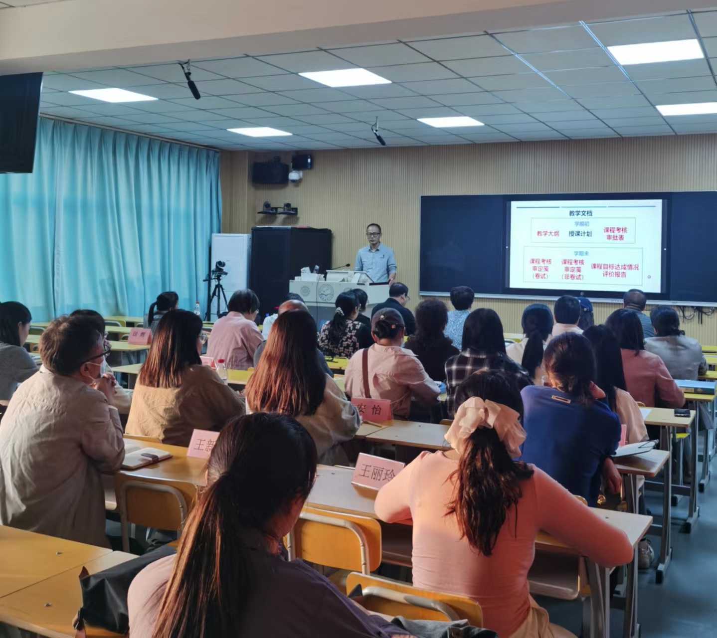 会上,孔亮博士就师范专业认证教学文档材料撰写标准及要求进行了逐项解读,对“课程目标达成情况评价报告”做了深度解析,并就文档材料撰写和准备过程中遇到的问题分享了解决经验,对大家提出的问题逐一给予了解答。期间,与会教师针对师范专业认证工作中思政课程文档准备过程中遇到的难点、痛点问题进行了讨论。(编辑:蔡文玉  审核人:王玉芬)