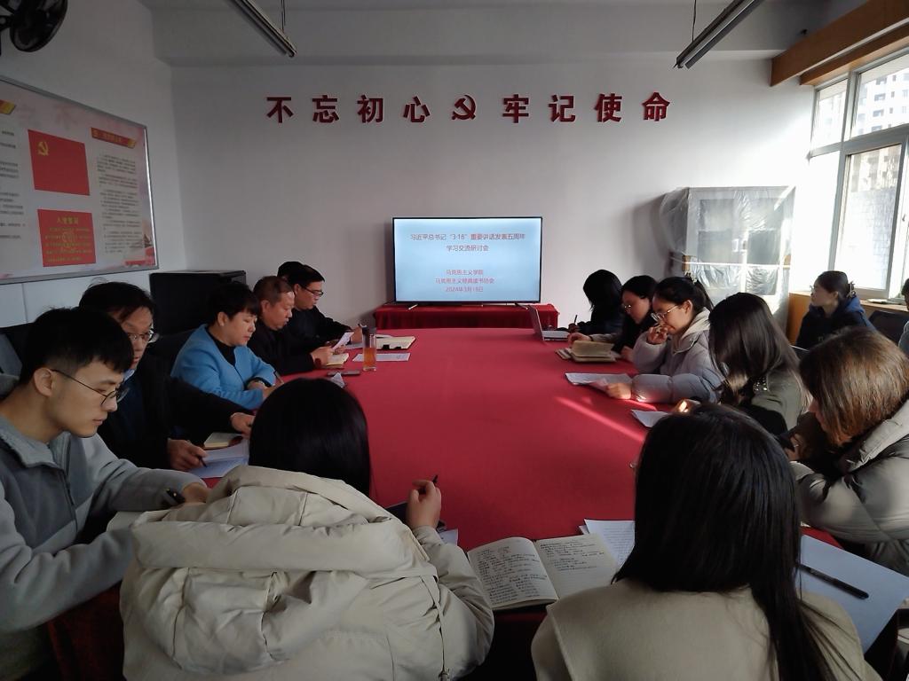 2024年3月18日,正值习近平总书记“3·18”重要讲话发表五周年之际,beat365亚洲体育官方网站召开学习交流研讨会,重温了习近平总书记在学校思想政治理论课教师座谈会上的重要讲话精神,畅谈了五年来思想政治理论课改革创新取得的成果。学院领导班子成员及青年教师代表参加了研讨会。