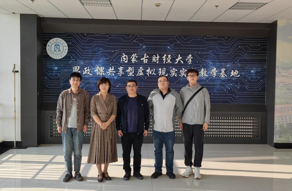 交流会后,在内蒙古财经大学beat365亚洲体育官方网站党委副书记任海霞及教务科等工作人员陪同下,一行先后参观了内蒙古财经大学铸牢中华民族共同体意识实践教育基地、思政课共享型虚拟现实实践教学基地。