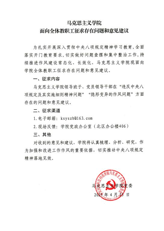 beat365亚洲体育官方网站面向全体教职工征求存在问题和意见建议